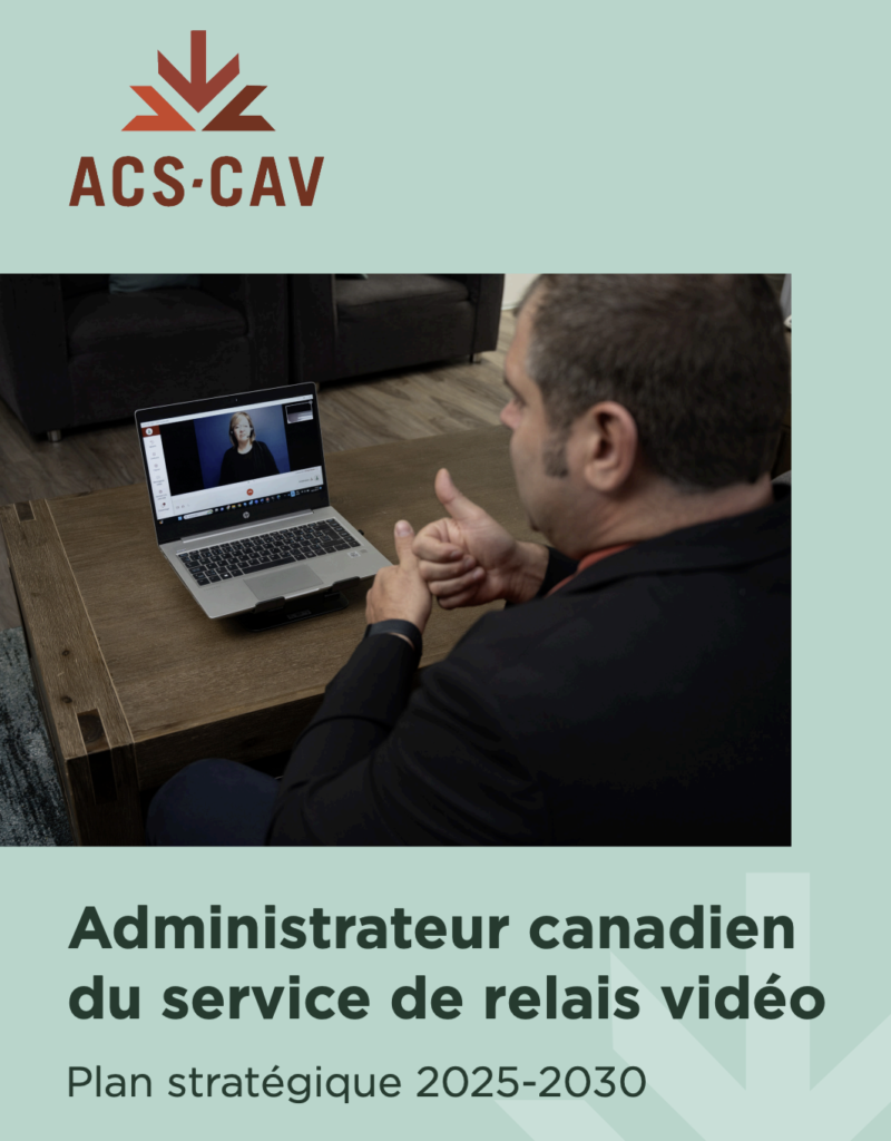 Notre plan stratégique 2025-2030 marque une étape déterminante pour notre organisation : pour la première fois, l’ACS se dote d’une vision stratégique à long terme afin d’orienter sa croissance, d’accroître son impact et de s’assurer que le SRV Canada continue d’évoluer de manière à répondre le mieux possible aux besoins de l’ensemble des Canadiens, qui utilisent la langue des signes américaine (ASL) et la langue des signes québécoise (LSQ) comme langues principales.